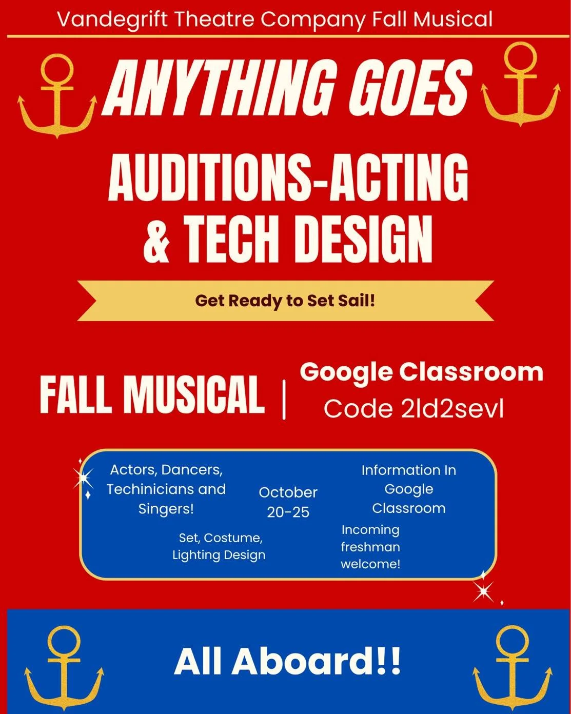 The VHS Boosters are proud to serve The Vandegrift Theatre Company and to provide funding for all its shows.