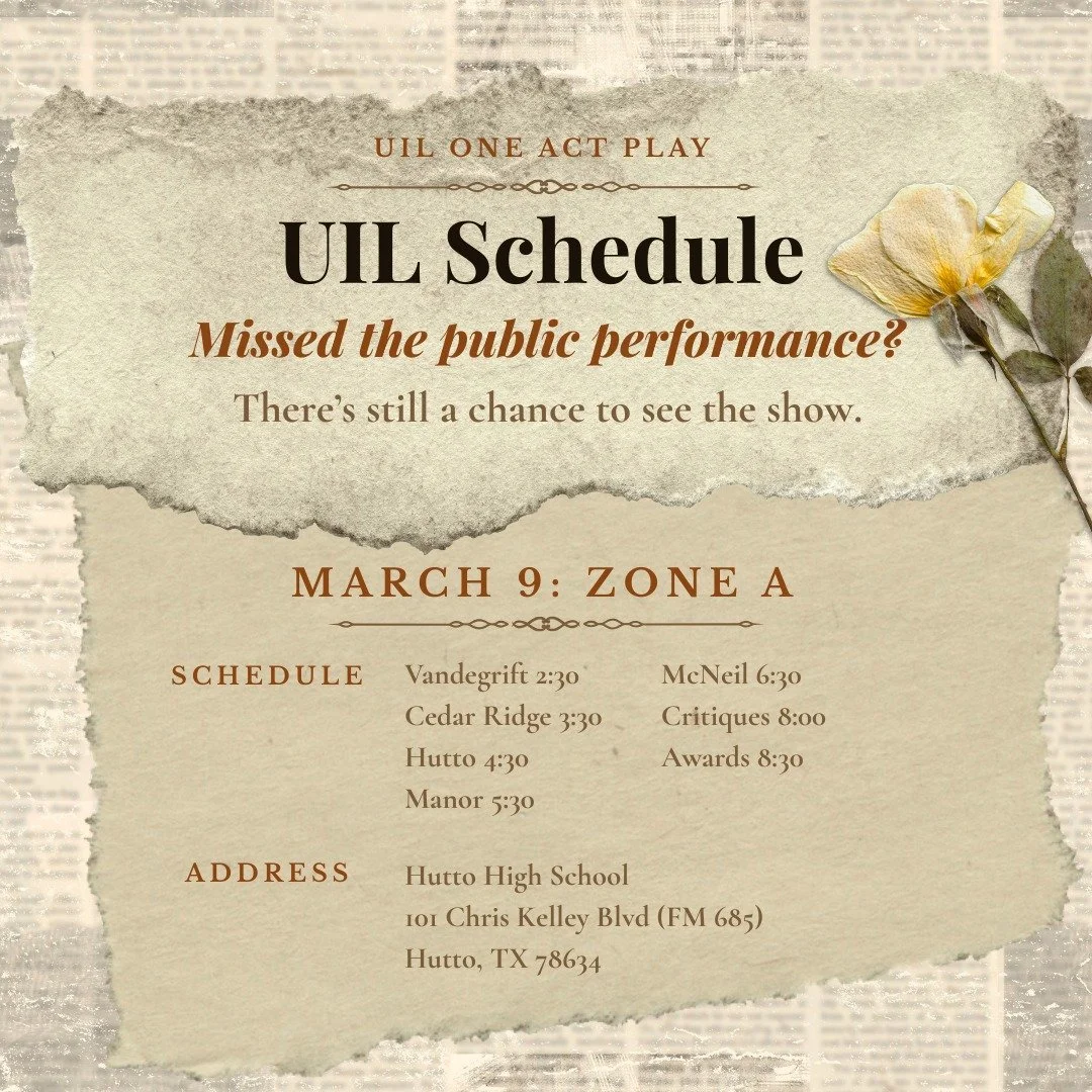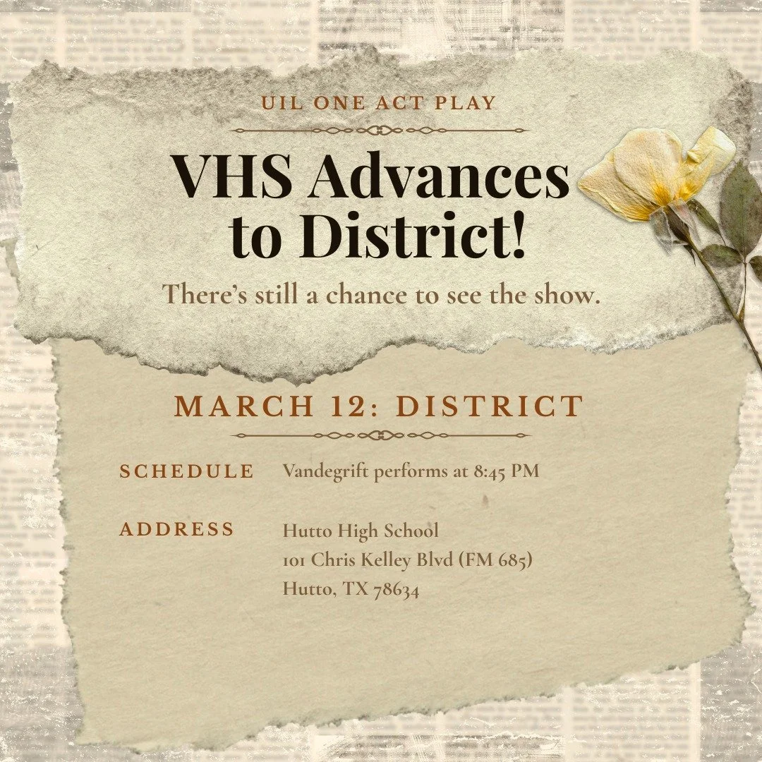 Vandegrift High School opened in 2009. Today, VHS Theatre is the largest Performing Arts Department in the Leander Independent School District. VHS Theatre continues to grow and thrive under the guidance of our dedicated Teachers and Staff.